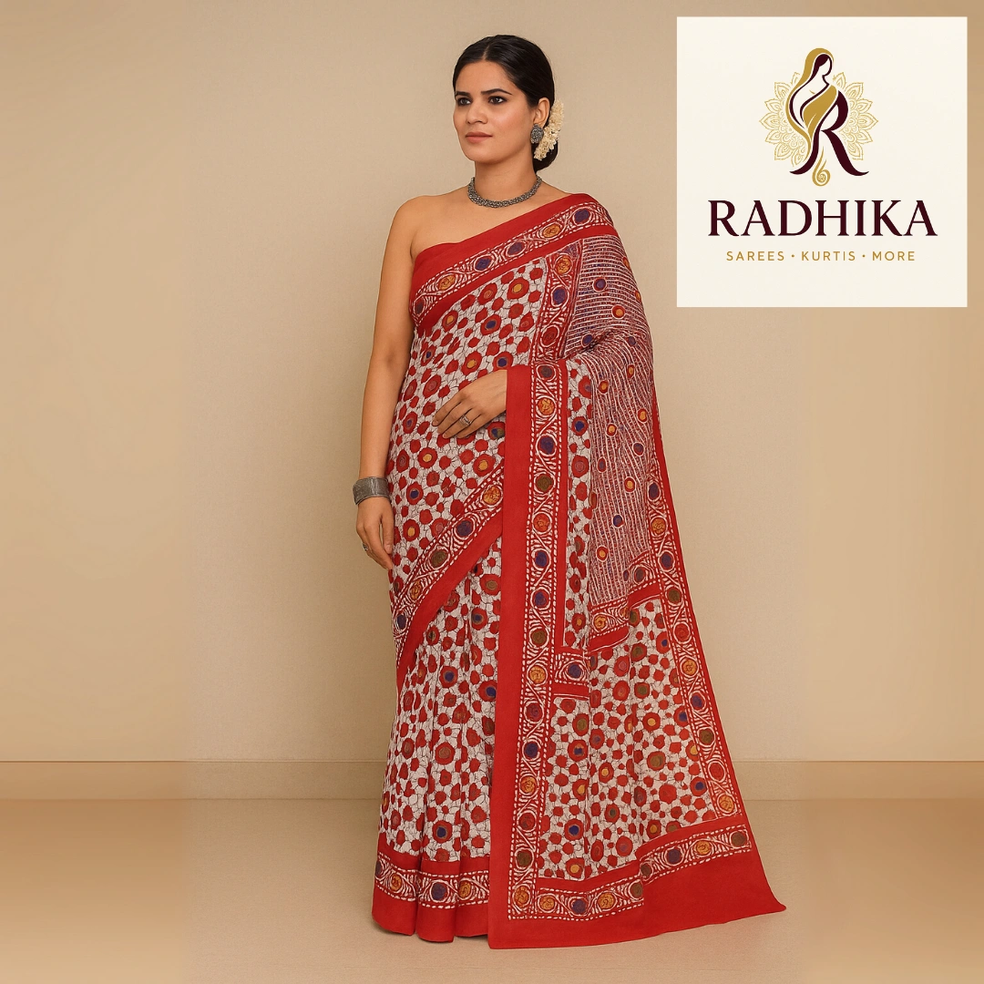 Be the first to review “Gulmohar Gaze Malai Cotton Saree”